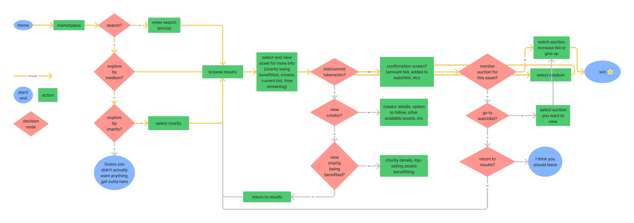 We belive auction NFT’s for donation based on charities will achieve the interests of both NFT buyers and charities; financially supporting both parties. How might we create a space that is fun and engaging for our users so not only are they successful but so are eh non profits and charities?